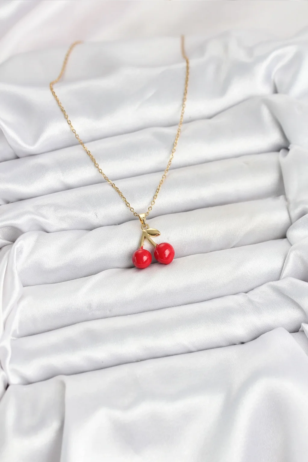 Populermarketim - 316l Çelik Zincir Gold Renk Kiraz Model Kadın Kolye