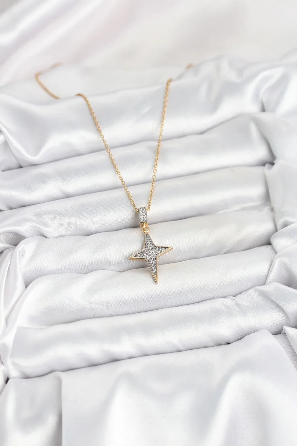 Populermarketim - 316l Çelik Zincir Gold Renk Kutup Yıldızı Model Zirkon Taşlı Kadın Kolye