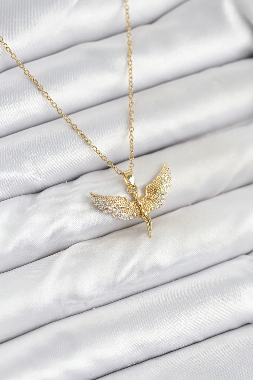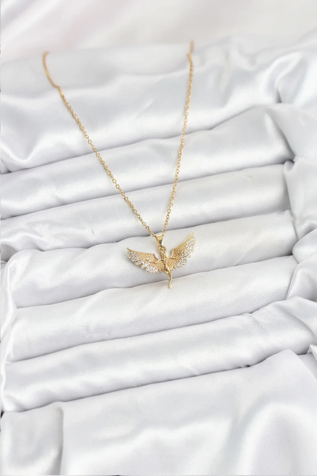 Populermarketim - 316l Çelik Zincir Gold Renk Melek Model Kadın Kolye