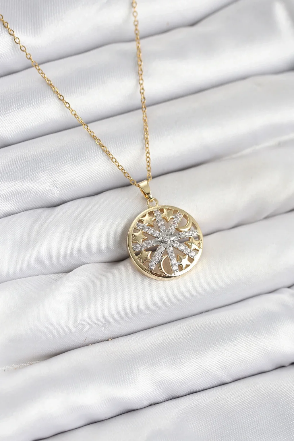 Populermarketim - 316l Çelik Zincir Gold Renk Zirkon Taşlı Kadın Kolye