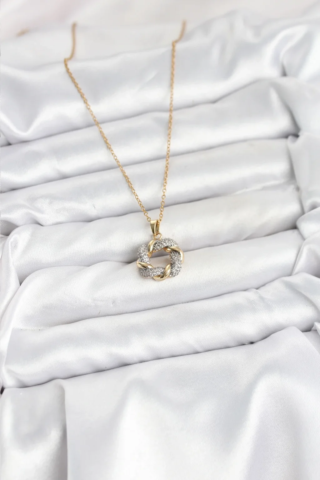 Populermarketim - 316l Çelik Zincir Gold Renk Zirkon Taşlı Sarmal Model Kadın Kolye