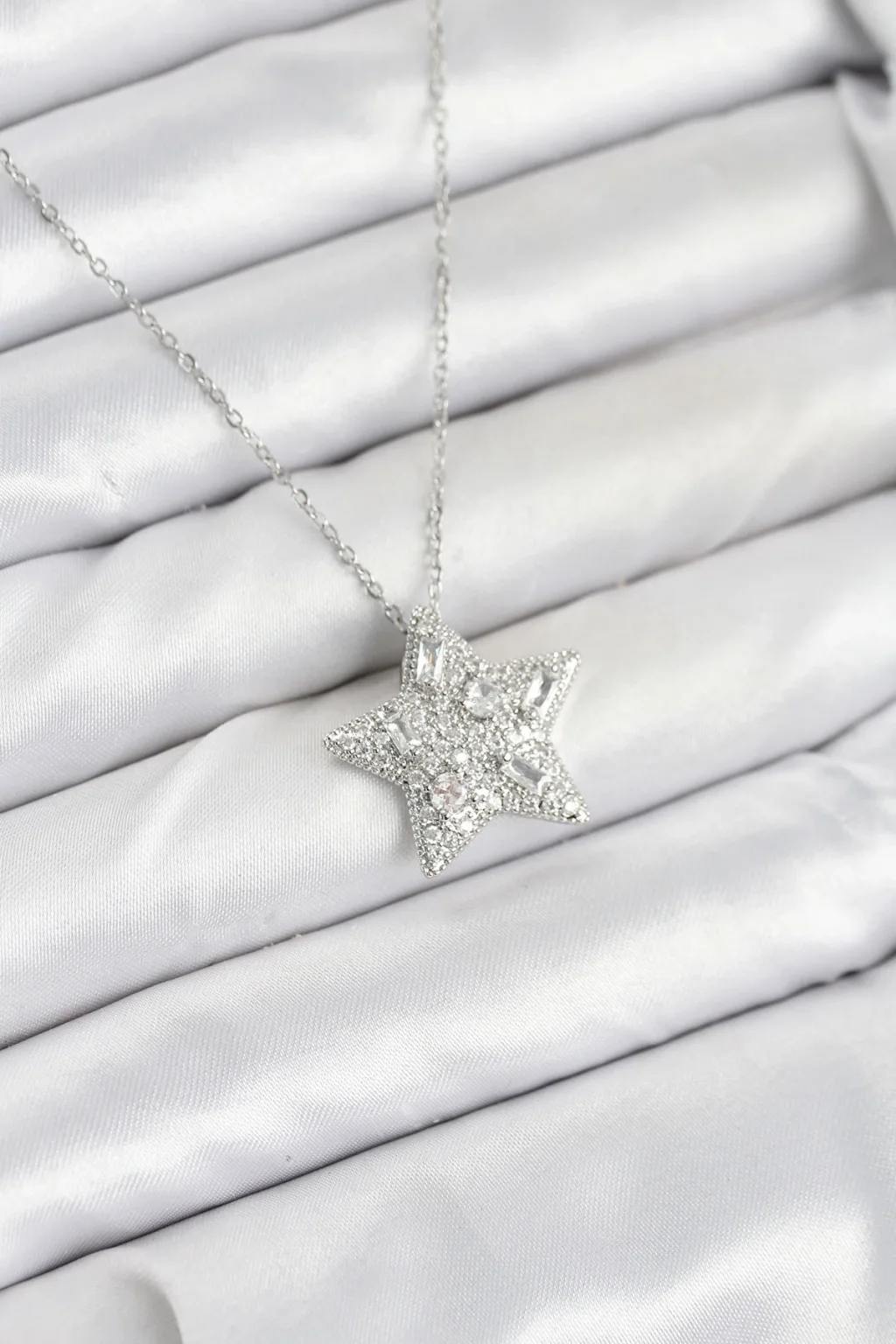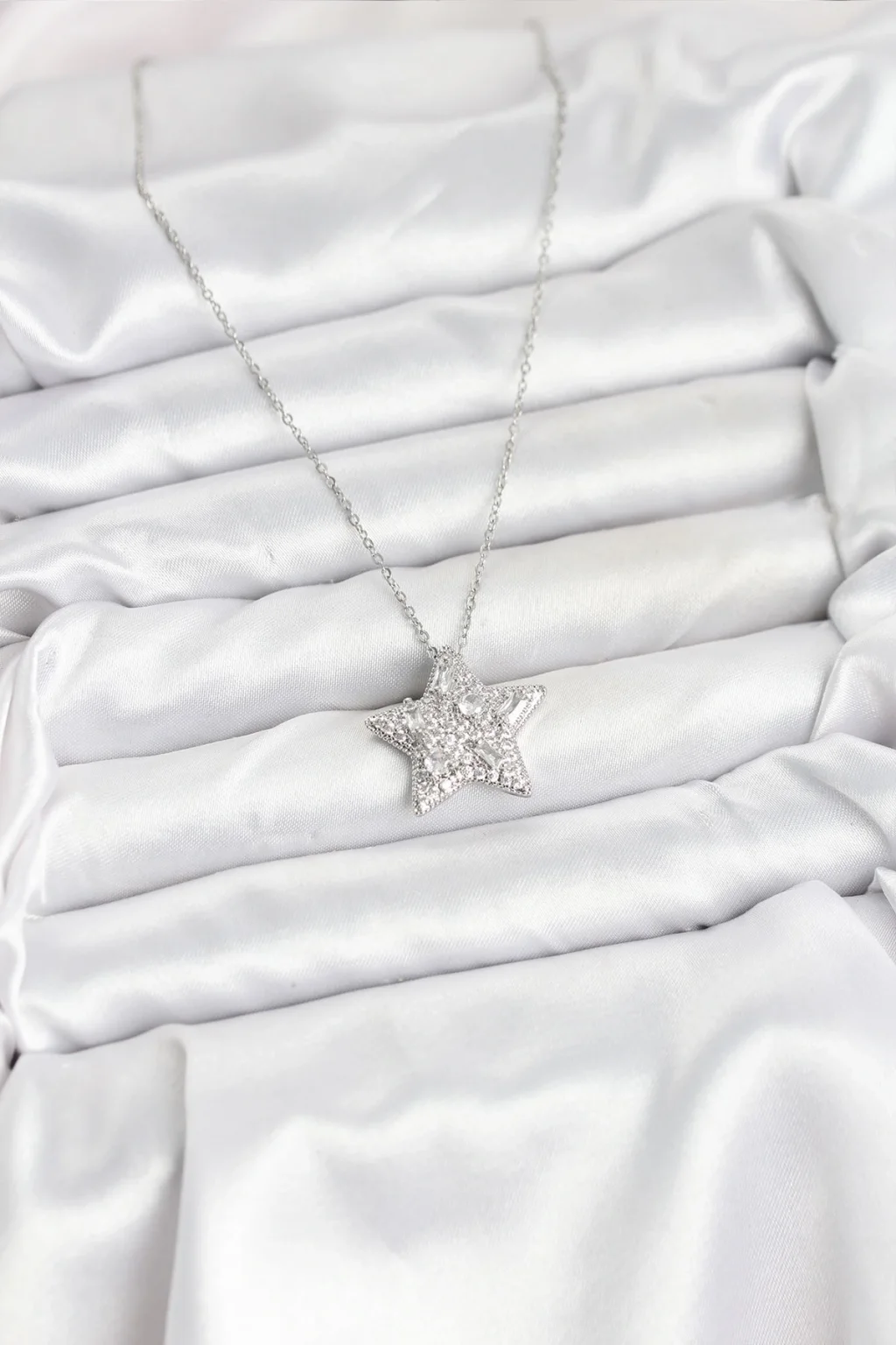 Populermarketim - 316l Çelik Zincir Gümüş Renk Yıldız Model Kadın Kolye