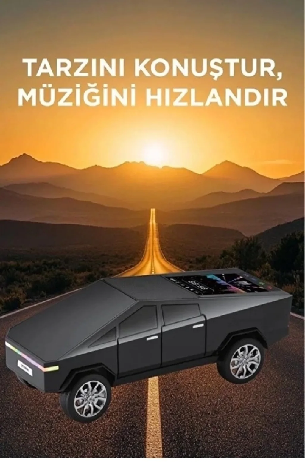 Araba Tasarımlı Bluetooth Hoparlör 15W Güçlü Ses RGB LED /TWS/USB kablosuz hoparlör ile müziğinizi yollara taşıyın Modern CyberTruck esintili tasarımıyla dikkat çeken bu hoparlör, sadece bir ses cihazı değil, aynı zamanda şık bir aksesuar.