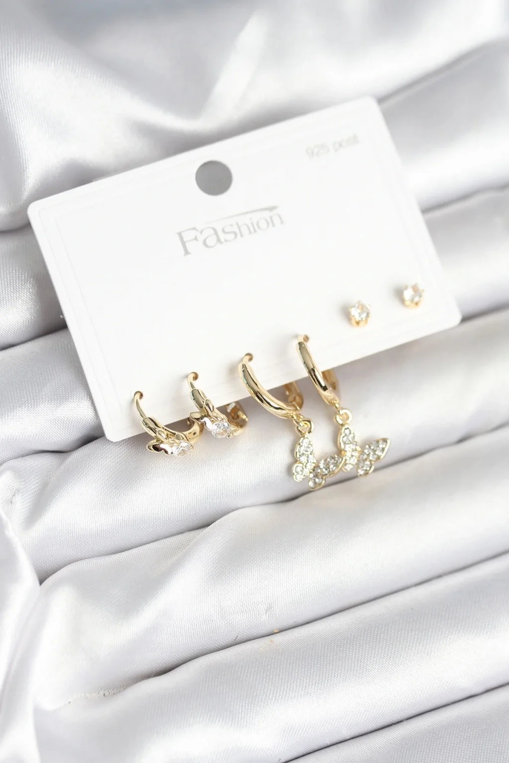 Populermarketim - Gold Renk Pirinç Kelebek Model 925 Ayar Gümüş Çivili Kadın Küpe Seti