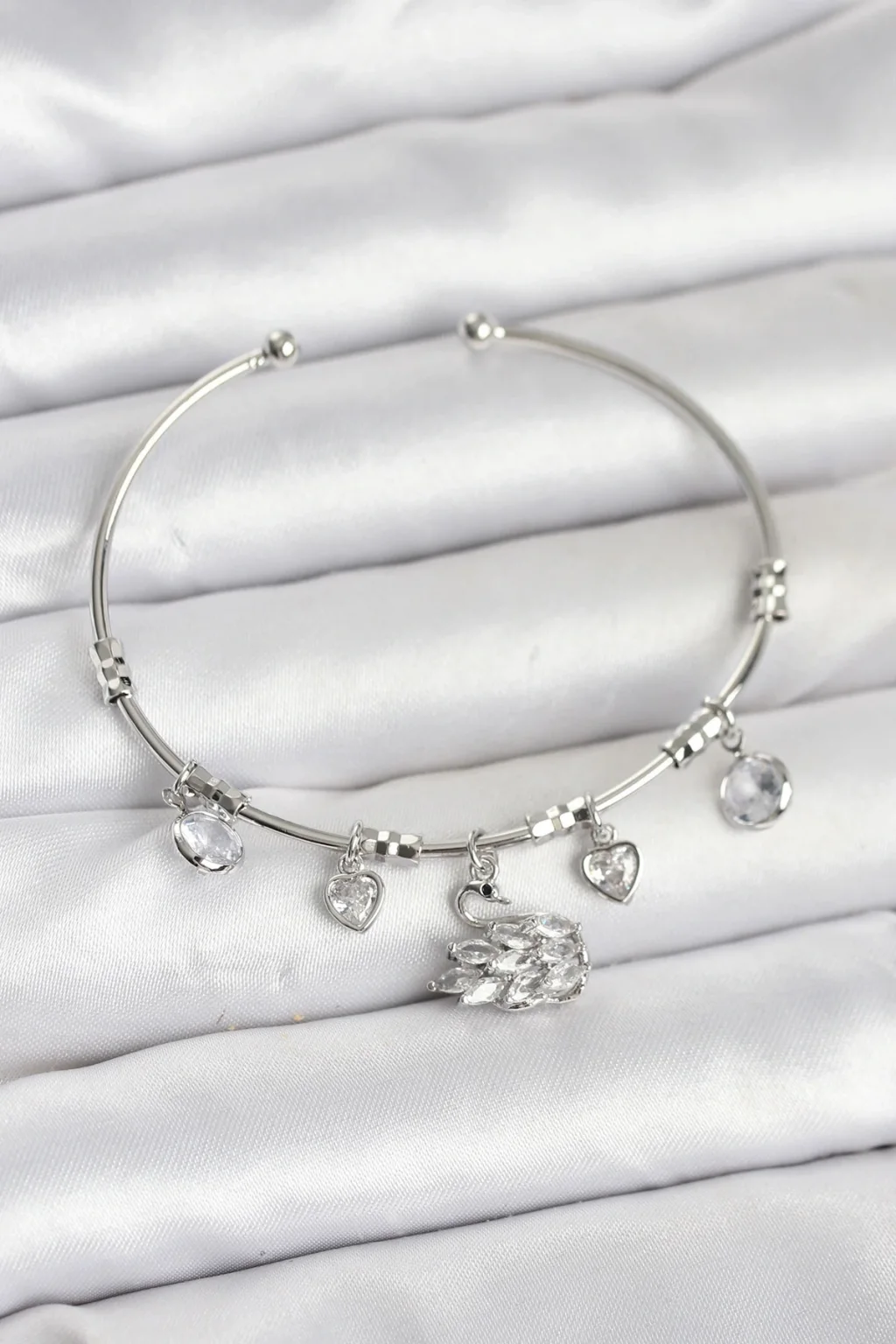 Populermarketim - Kuğu Charmlı Gümüş Renk Kadın Bileklik