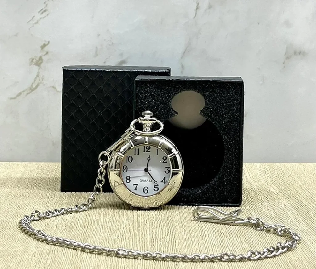 Özel Kutulu Gümüş Köstekli Saat Alk4685 Ürün Ölçüleri 4*5 Cm