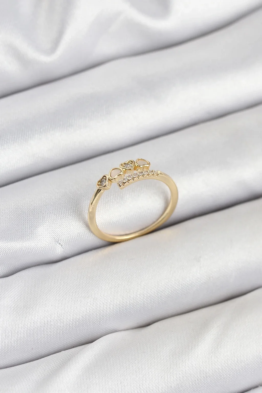 Populermarketim - Pirinç Gold Renk Kalpli Detaylı Zirkon Taşlı Kadın Yüzük