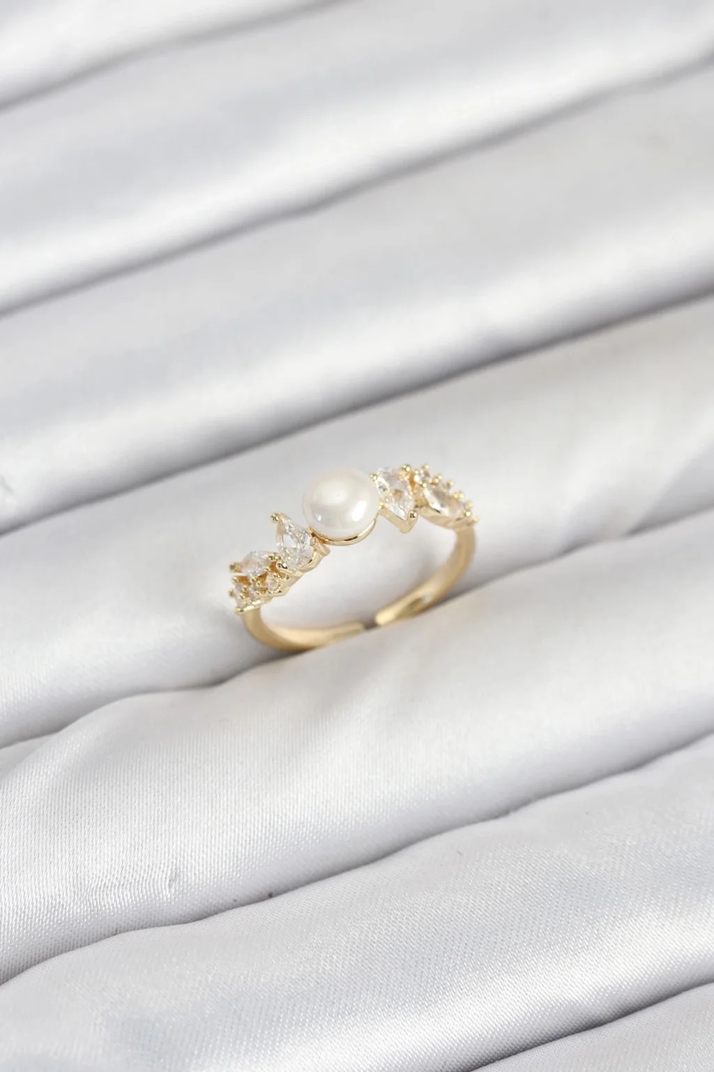Populermarketim - Pirinç Gold Renk Zirkon Taşlı İncili Model Kadın Yüzük