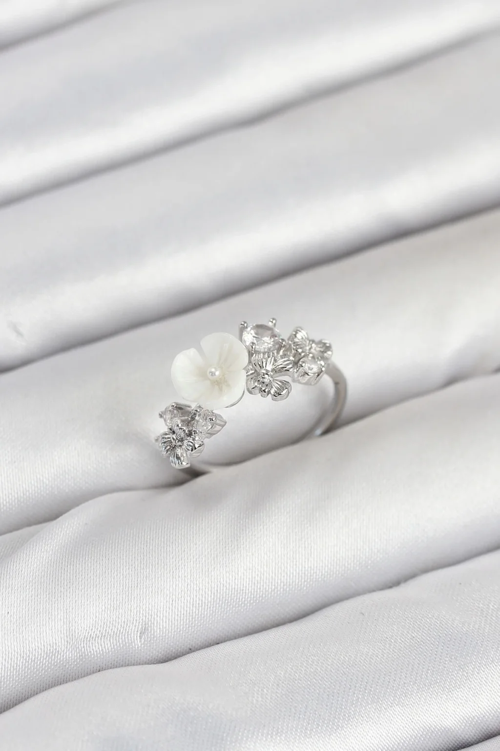 Populermarketim - Pirinç Gümüş Renk Çiçek Model Zirkon Taşlı Kadın Yüzük