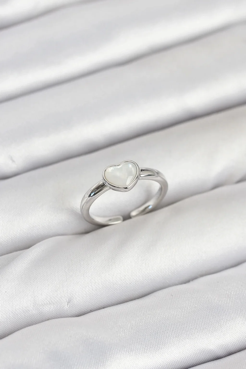 Populermarketim - Pirinç Gümüş Renk Kalpli Kadın Yüzük