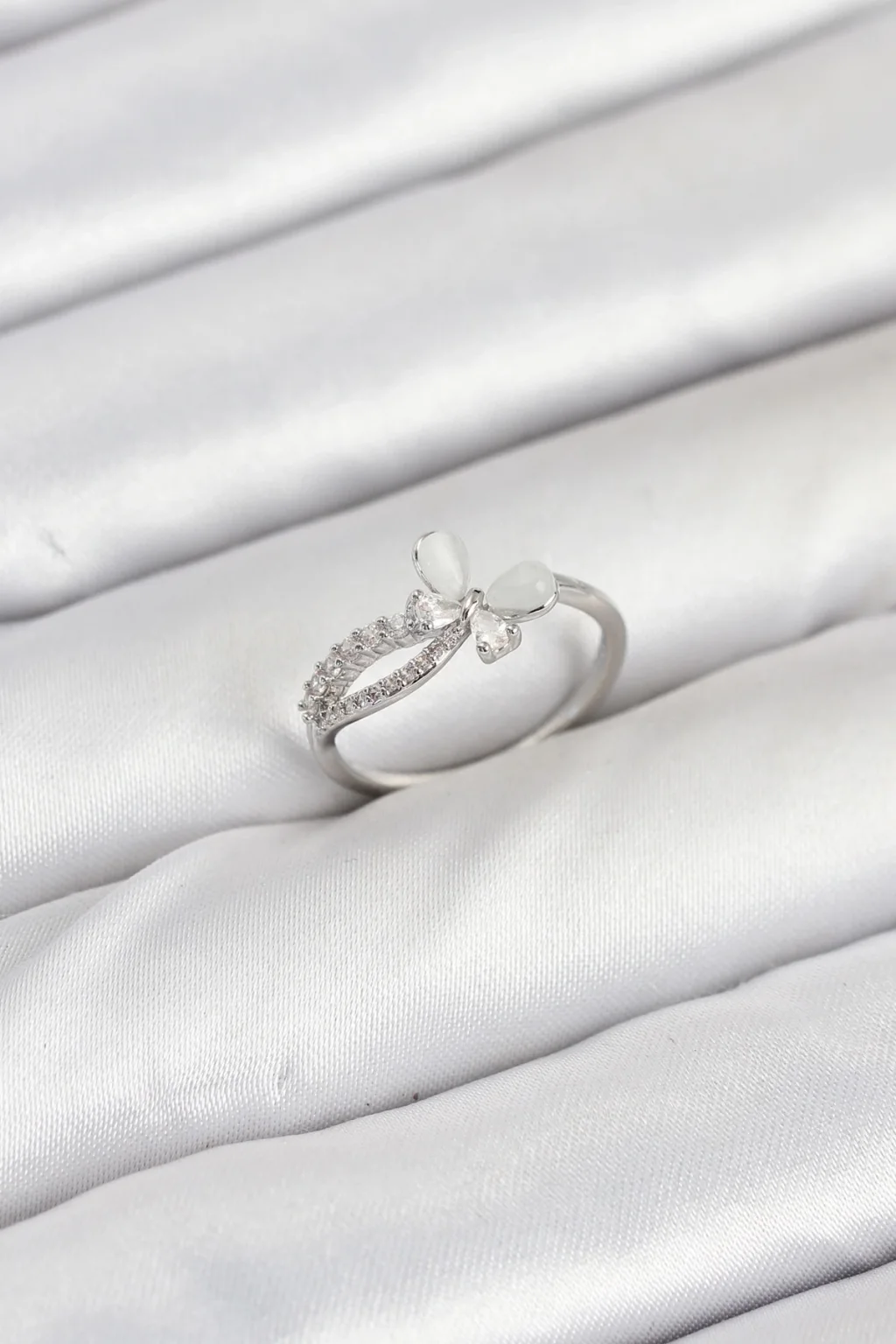Populermarketim - Pirinç Gümüş Renk Kelebek Zirkon Taşlı Kadın Yüzük