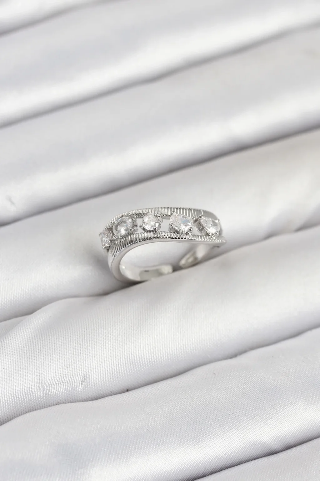 Populermarketim - Pirinç Gümüş Renk Zirkon Taşlı Kadın Yüzük
